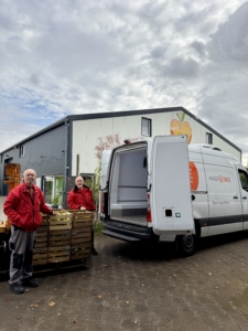 Diese Woche nun konnten wir eine große Anzahl von Kisten, gefüllt mit leckeren Äpfeln, bei Appel-Happel abholen. Das bereichert das Obst-Angebot für unsere Kundinnen und Kunden.